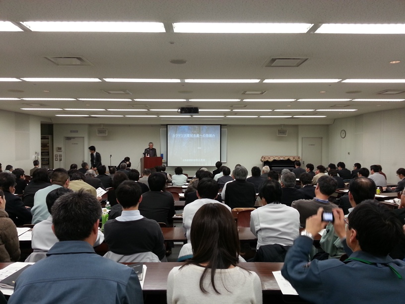土曜日夕方に集合し、まず昨年出来上がったばかりの「からまつ講義棟」にて、久米林長からからまつについての講義をして頂きました。90分の予定が予定時間を過ぎての質疑応答となりました。